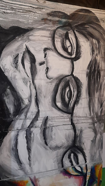 it feels as though someone could be pulled apart, with two separate appearances; a happy, physical front and a struggling, depressed interior. Whilst the work is a self portrait of myself, I have exaggerated the features and create an unrealistic image to highlight the stigma and unrealistic standards when it comes to the idea of mental health or insanity. Acrylic and watercolour paints were used to create an unstructured piece, playing on the traditional stereotype of how a mentally unwell individual could be perceived as unsettled, messy or unstable, something which is heavily reflected with this painting.