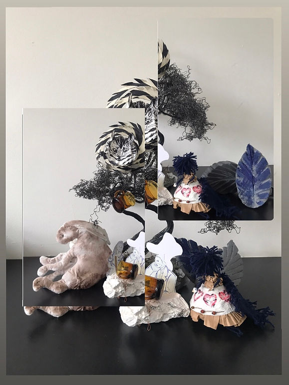 My work explores the idea of growth and facing reality, as one will always be an outsider in the real world struggling to fit in. It is just like a collage. We cut and stick various pictures and materials that do not belong together, however once they are assembled, it adds different textures and meaning which can represent different events and experiences we come across when grouping up. In a way representing the difficulties, it is the surreal elements which serve to challenge our perception of the world around us. The 3D collage signifies the highs and lows we experience when group up in the real world. The different 3D sculptures are of unusual sizes and materials representing different elements which are part of life such as anxiety, stress, responsibilities and even the unequal society.